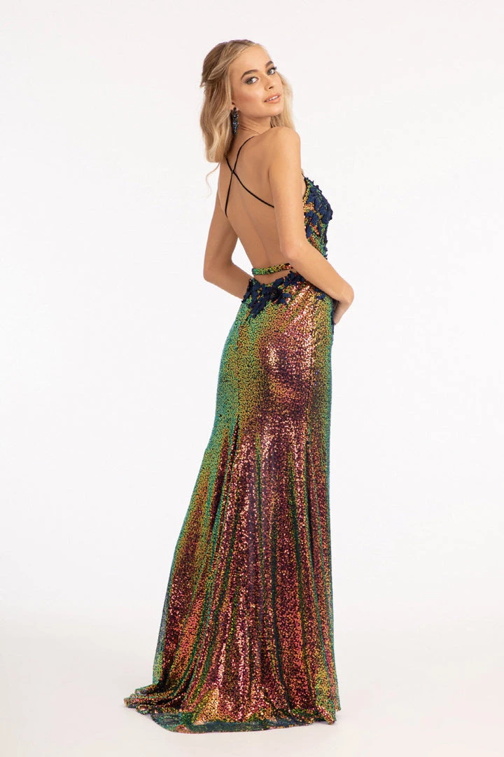 - Full Iridescent Sequin Sweetheart Neckline Gown with Leg Slit