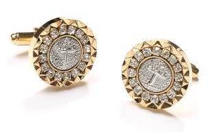 Add a refined look to your outfit with these round gold and silver cufflinks decorated with a cross and clear crystals. A variety of cufflinks make a great addition to any wardrobe because they add a sophisticated finishing touch to a formal attire. Look sharp in these affordable cuff links for job interviews, weddings, work, for any occasion. Also make a great gift for men!