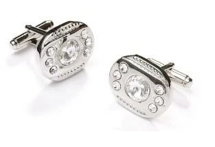 Add a classy look to your outfit with these oval silver cufflinks decorated with clear crystals. A variety of cufflinks make a great addition to any wardrobe because they add a sophisticated finishing touch to a formal attire. Look sharp in these affordable cuff links for job interviews, weddings, work, for any occasion. Also make a great gift for men!