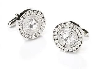 Add a classy look to your outfit with these round silver cufflinks decorated with clear crystals. A variety of cufflinks make a great addition to any wardrobe because they add a sophisticated finishing touch to a formal attire. Look sharp in these affordable cuff links for job interviews, weddings, work, for any occasion. Also make a great gift for men!