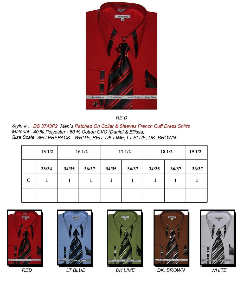 These men’s french cuff dress shirts are a great deal because it includes: Dress Shirt, Tie, and Hanky (as shown in image) and shows everyone that you know how to dress. The patched collar/sleeves and the pattern tie with the hanky add a classic look to these men’s french cuff shirts. Daniel Elissa designs dress shirts that will add a refined look to your wardrobe without breaking your wallet. Men will love wearing these dress shirts because they will look sharp for work, weddings, church, or for any special occasion. Also makes an amazing gift for men!