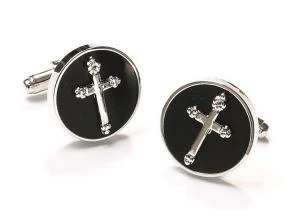 Add a dashing look to your outfit with these religious silver cufflinks decorated with a cross against a black background. A variety of cufflinks make a great addition to any wardrobe because they add a sophisticated finishing touch to a formal attire. Look sharp in these affordable cuff links for job interviews, weddings, work, for any occasion. Also make a great gift for men!