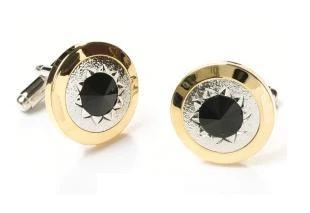 Add a refined look to your outfit with these round gold cufflinks decorated with a black stone in the middle and clear crystals. A variety of cufflinks make a great addition to any wardrobe because they add a sophisticated finishing touch to a formal attire. Look sharp in these affordable cuff links for job interviews, weddings, work, for any occasion. Also make a great gift for men!