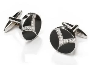 Add a classy look to your outfit with these round silver and black cufflinks that have clear crystals that form a V-shape. A variety of cufflinks make a great addition to any wardrobe because they add a sophisticated finishing touch to a formal attire. Look sharp in these affordable cuff links for job interviews, weddings, work, for any occasion. Also make a great gift for men!
