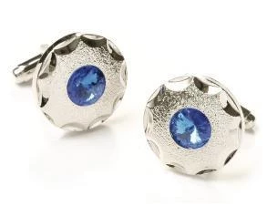 Add a classy look to your outfit with these round silver cufflinks decorated with a simple blue crystal in the middle. A variety of cufflinks make a great addition to any wardrobe because they add a sophisticated finishing touch to a formal attire. Look sharp in these affordable cuff links for job interviews, weddings, work, for any occasion. Also make a great gift for men!