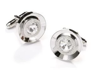 Add a classy look to your outfit with these round silver cufflinks decorated with clear crystals. A variety of cufflinks make a great addition to any wardrobe because they add a sophisticated finishing touch to a formal attire. Look sharp in these affordable cuff links for job interviews, weddings, work, for any occasion. Also make a great gift for men!