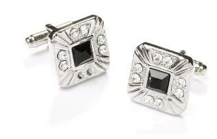 Add a dashing look to your outfit with these square silver cufflinks decorated with a black crystal in the middle and clear crystals. A variety of cufflinks make a great addition to any wardrobe because they add a sophisticated finishing touch to a formal attire. Look sharp in these affordable cuff links for job interviews, weddings, work, for any occasion. Also make a great gift for men!
