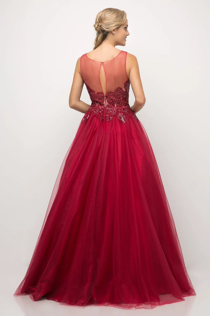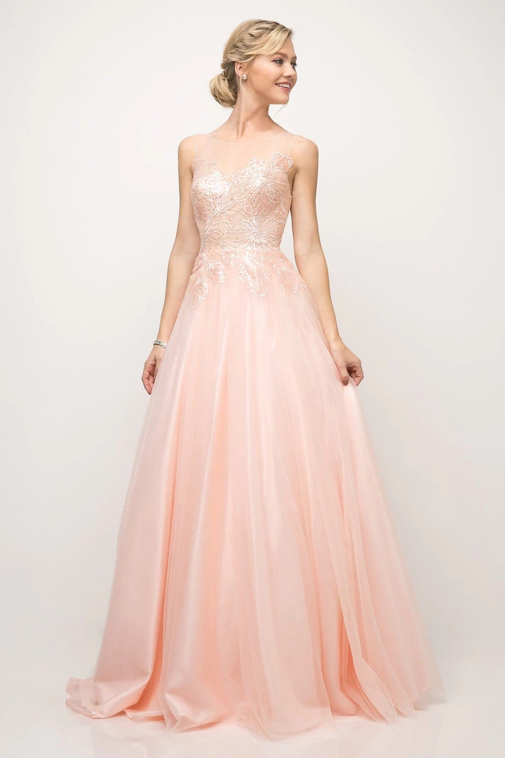 Look picture-perfect in this beautiful long sleeveless A-line dress with embroidered lace appliques by Cinderella Divine UE009.