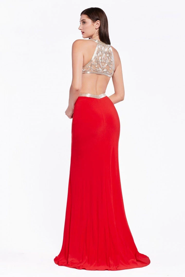 - Beaded Long Halter Sheath Dress by Cinderella Divine 959