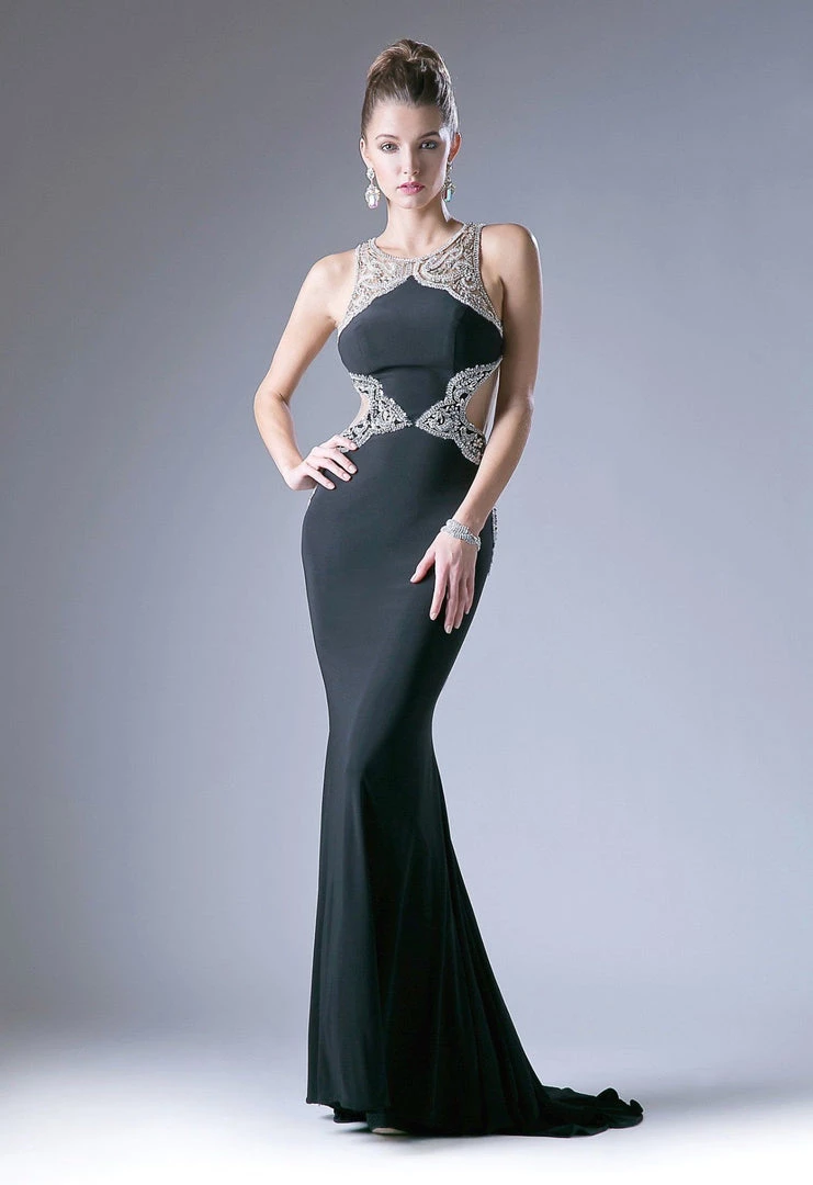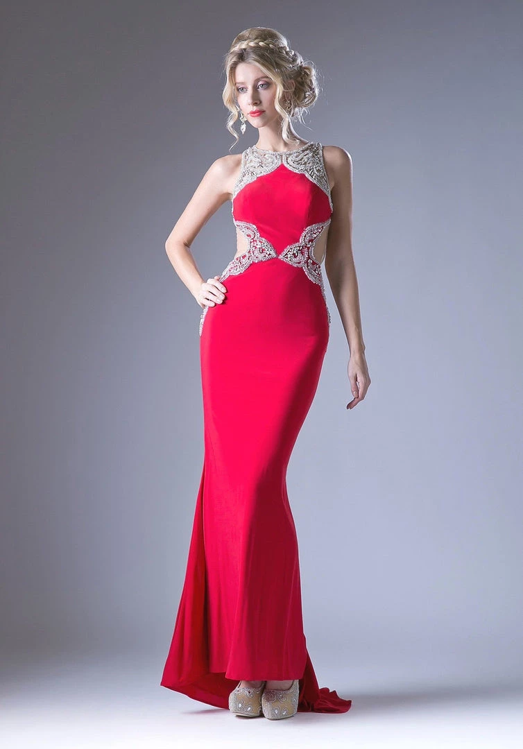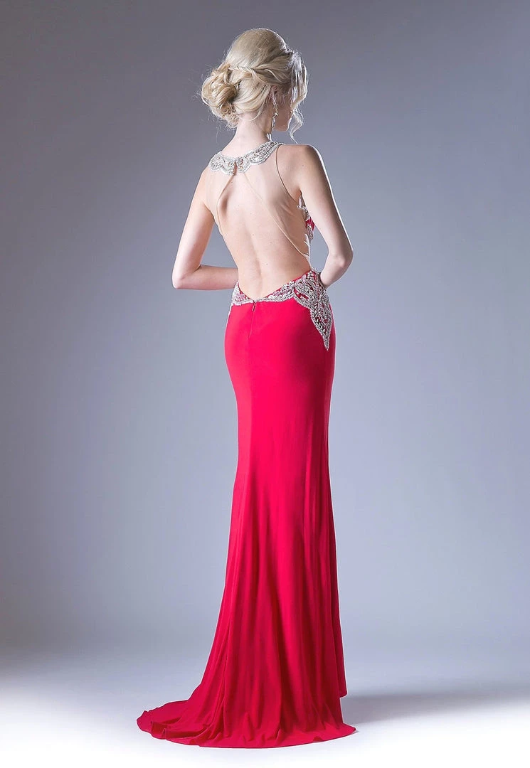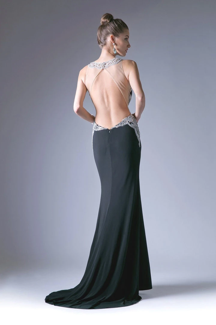 Make a grand entrance in this beaded long open back dress with fitted skirt by Cinderella Divine ML8.