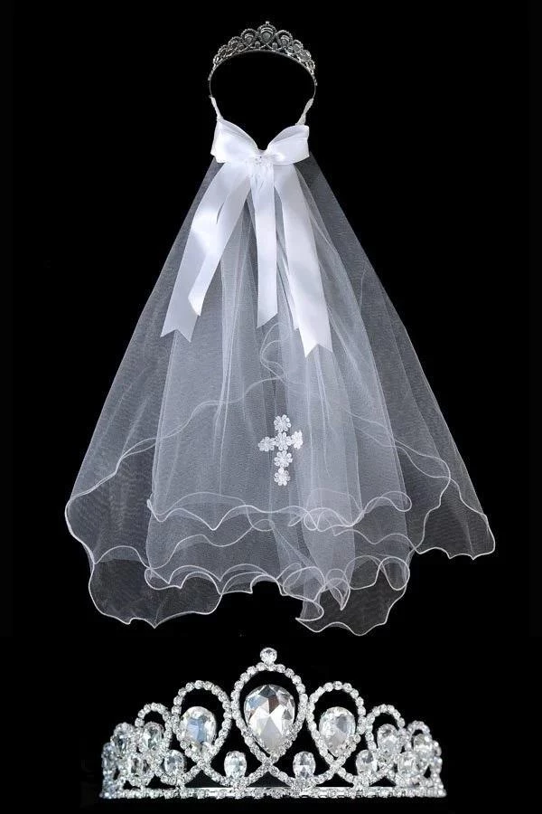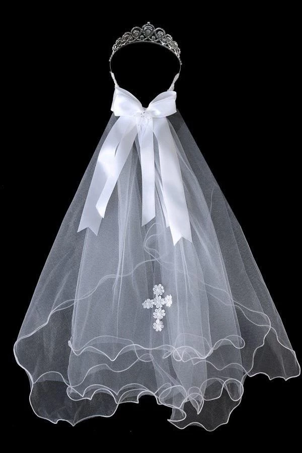 - Girls First Communion Crown Veil with Embroidered Cross