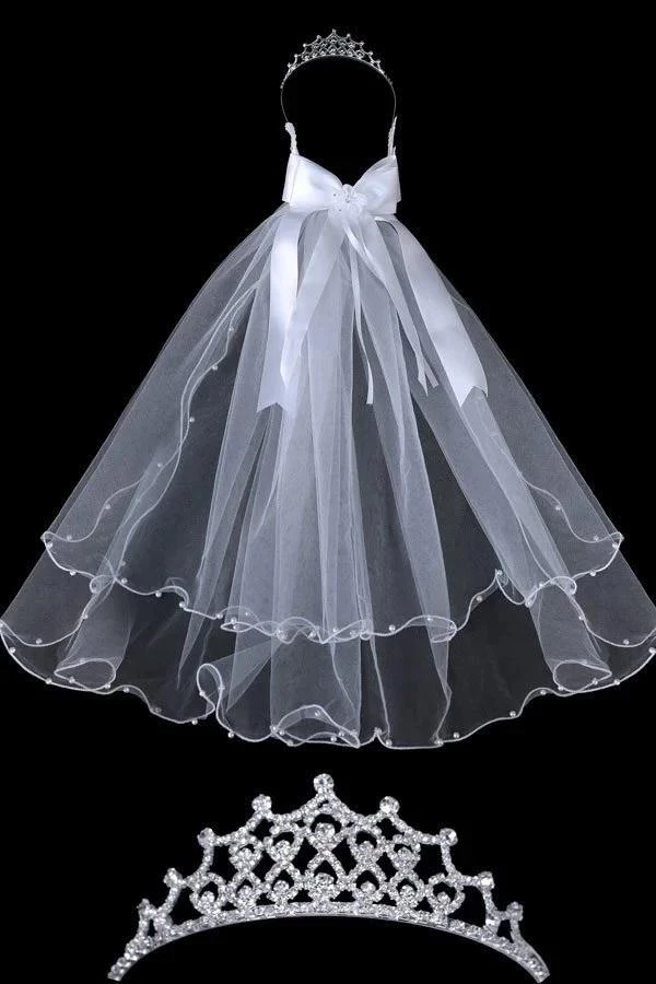 - Girls Pearl Beaded First Communion Veil with Tiara