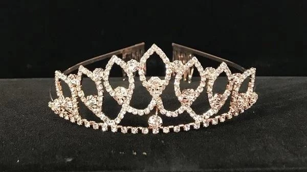 Your sweet girl will love to accessorize her dress with this beautiful rose gold rhinestone teardrop tiara. The attached comb on each side will securely hold this crown in place.