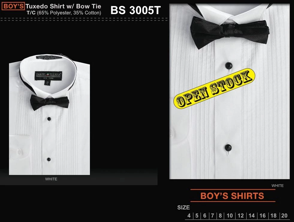 Be the first to review “Daniel Ellissa Boys Dress Shirts Boys Tuxedo Dress Shirt With Bow Tie” Cancel reply