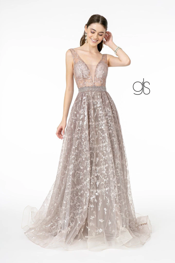 You’ll love twirling around in thisĀ embroidered long illusion bodice dress with A-line skirt by Elizabeth K GL2971.