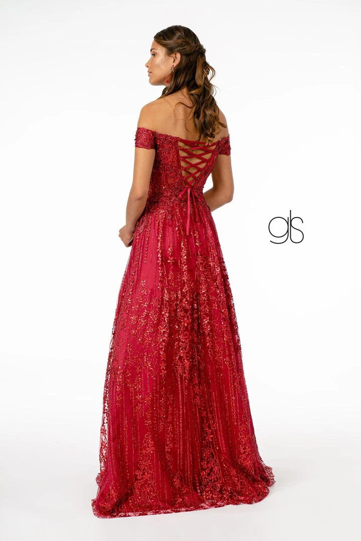 Dance the night away in thisĀ embroidered long off the shoulder glitter dress with lace up corset back by Elizabeth K GL2941. Affordably priced at $299, this gown is perfect for any formal event and will keep you on budget!