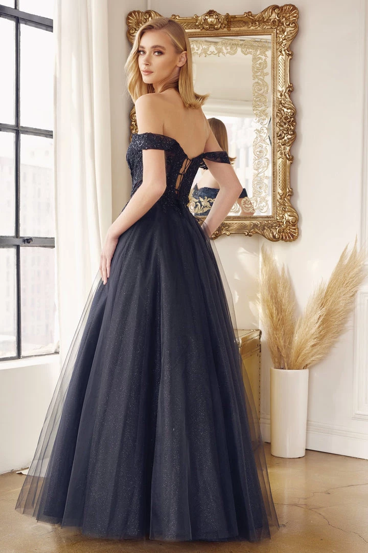 - Embroidered Off Shoulder Tulle Gown by Juliet
