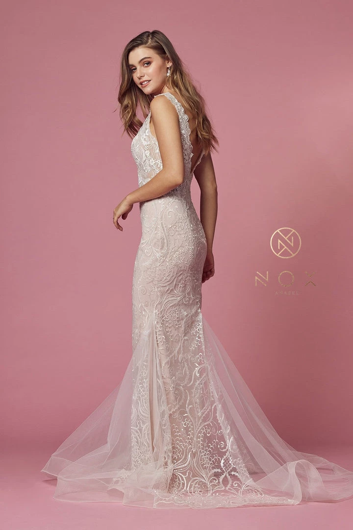 - Embroidered V-Neck Mermaid Dress by Nox Anabel JW909