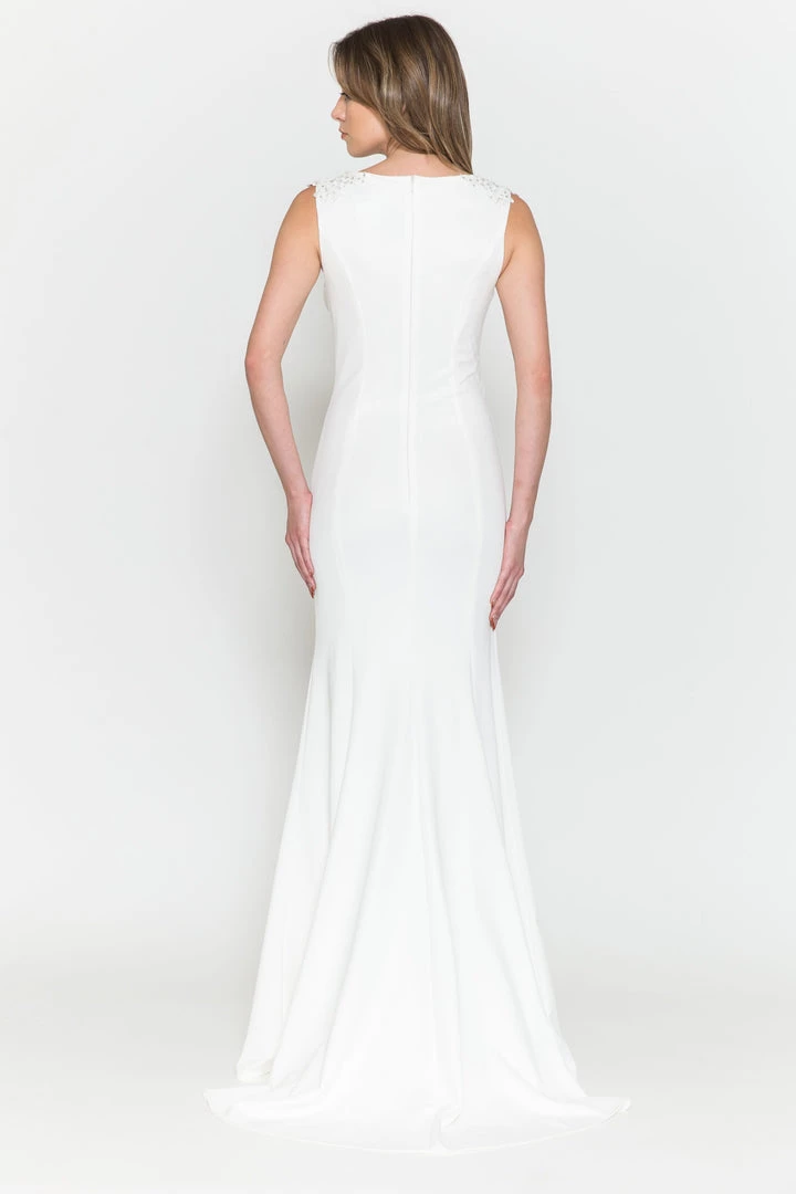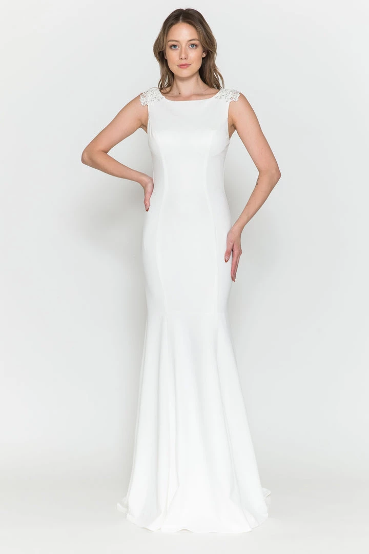 - Fitted Chiffon Cape Wedding Dress by Poly USA 8566-1