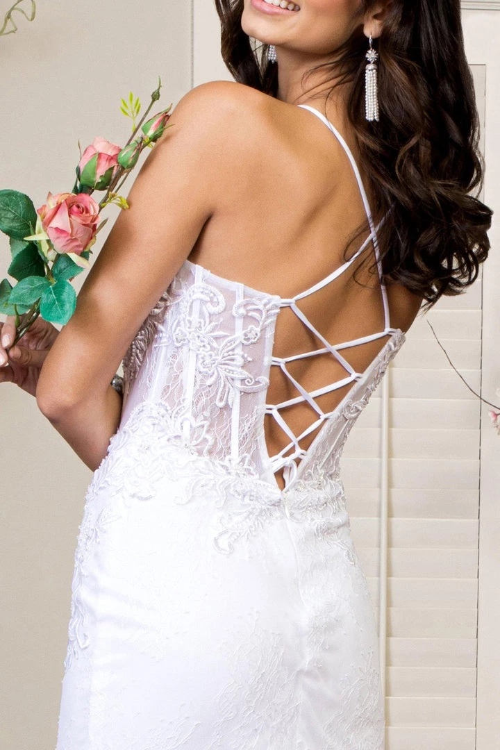 - Embroidered Sheer Corset Bodice Mermaid Wedding Gown with Lace Up Back