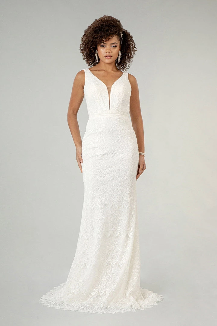 Look breathtaking in this fitted lace wedding dress by Elizabeth K GL1940.