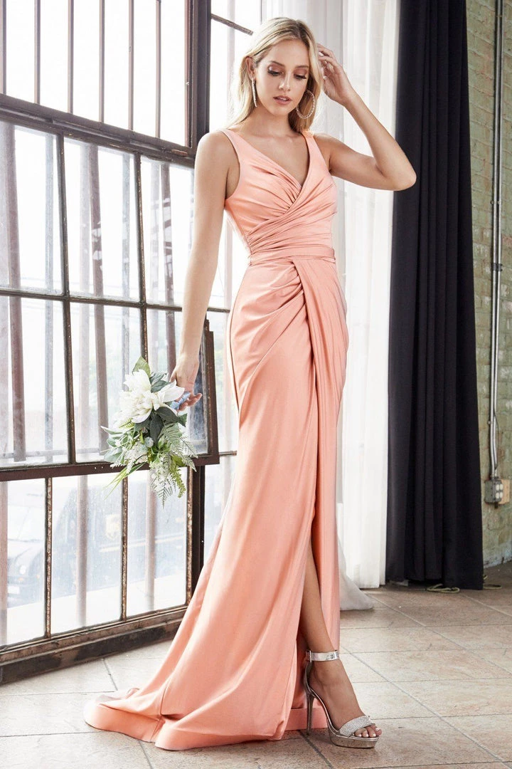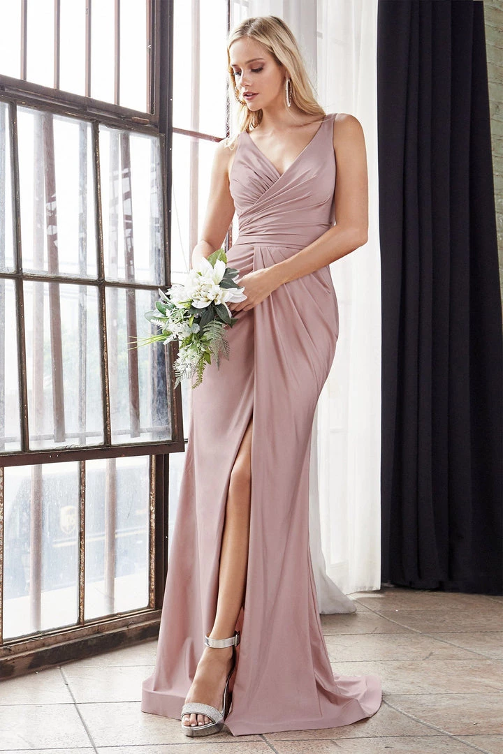 Look radiant in this long fitted jersey dress with side slit by Cinderella Divine C81730.