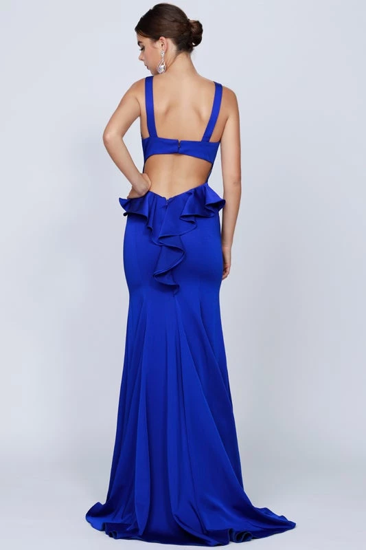 - Fitted Sleeveless Gown with Ruffled Back by Juliet