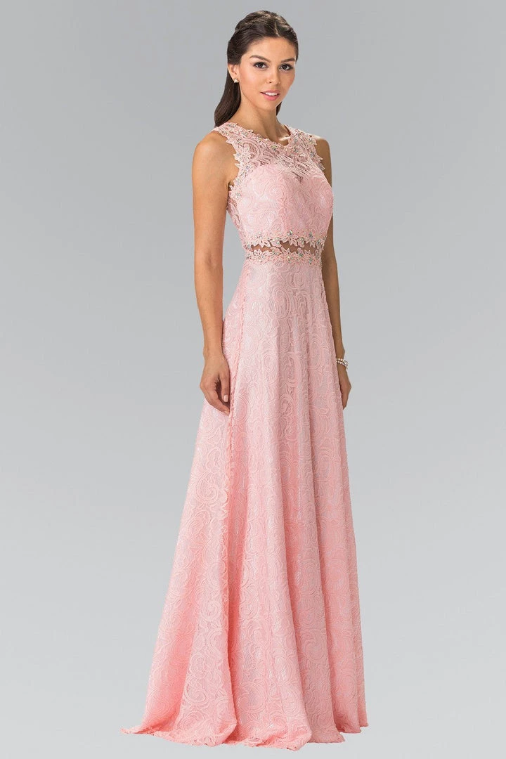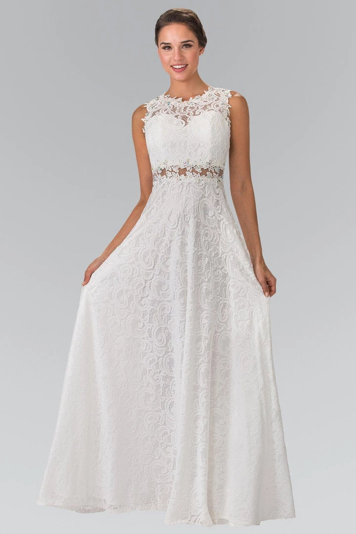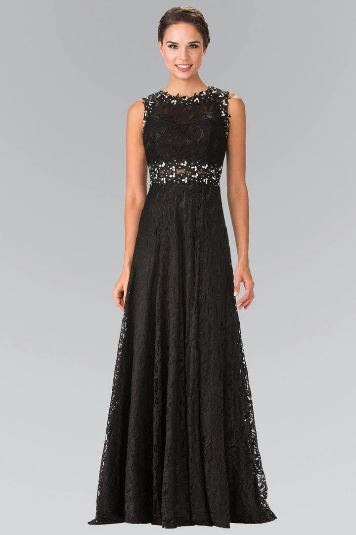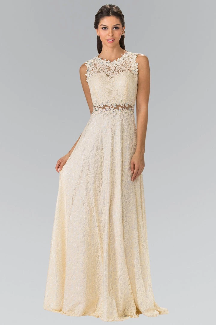 Be a trendsetter in this floor length sleeveless beaded lace dress by Elizabeth K.