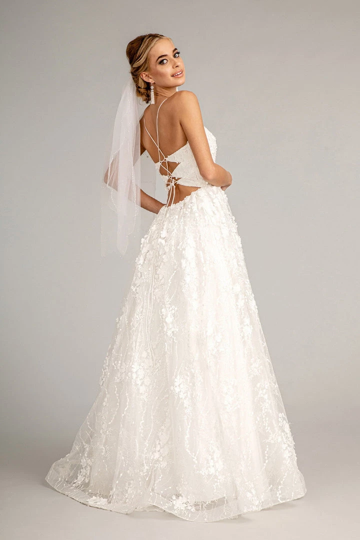- Floral Embroidered Lace-Up Mesh Wedding Gown w/ Sweetheart Neckline