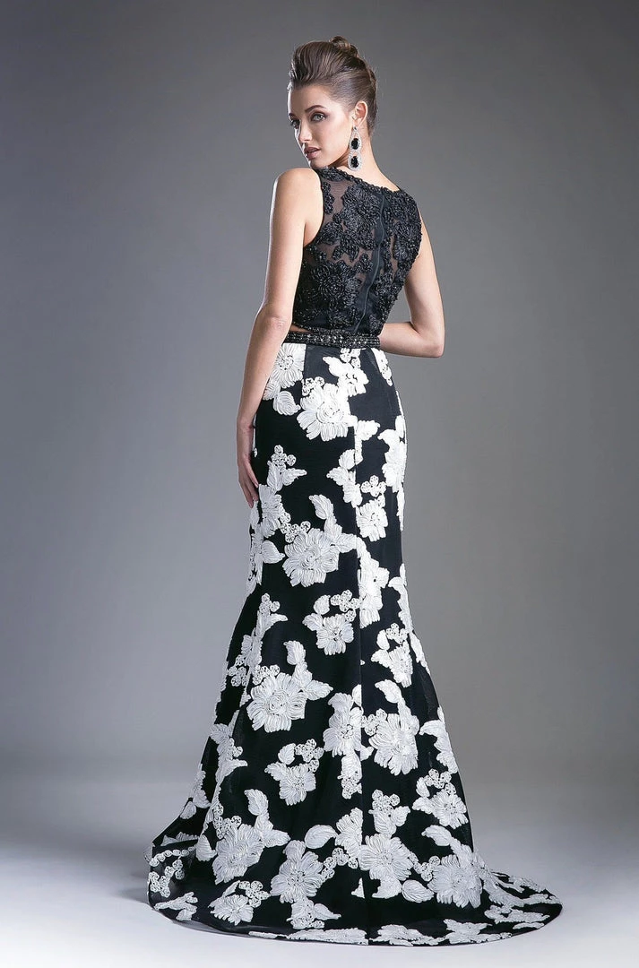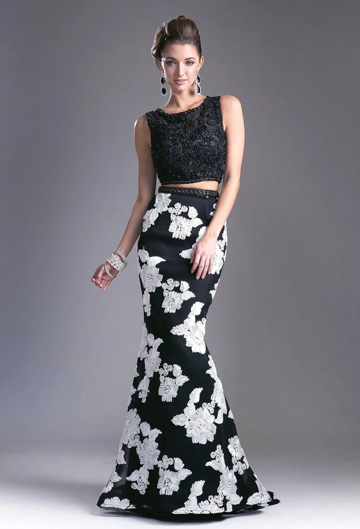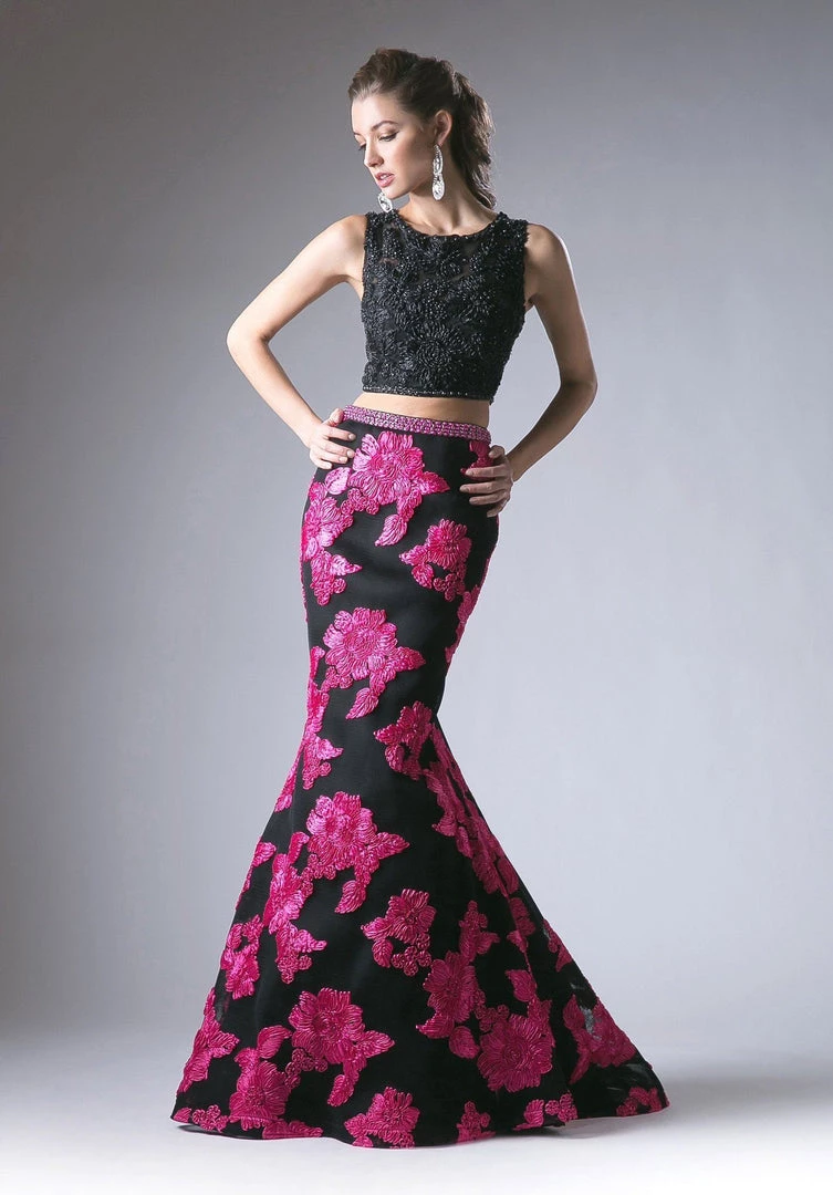 You’ll be the life of the party in this long two piece mermaid dress with floral skirt by Cinderella Divine 8948.