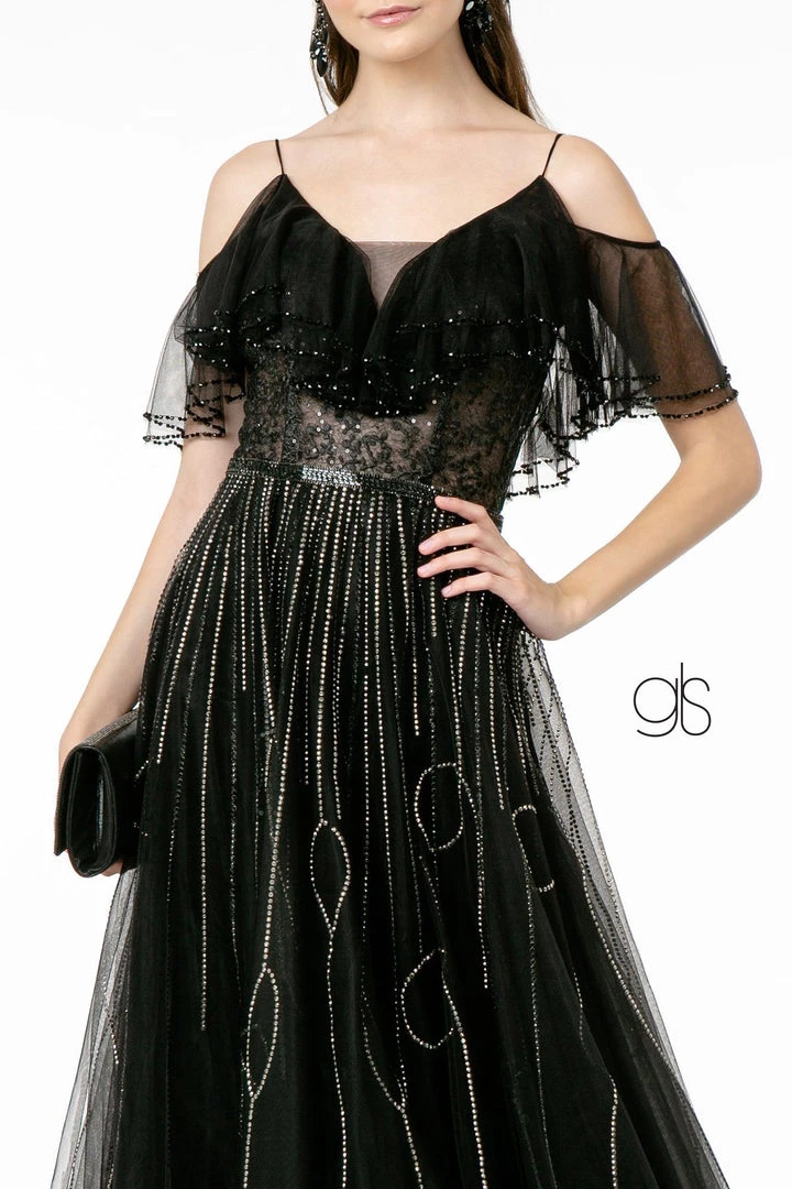 You’ll love twirling around in thisĀ long A-line cold shoulder dress with beaded embellishments by Elizabeth K GL1809. Affordably priced at $299, this gown is perfect for any formal event and will keep you on budget!