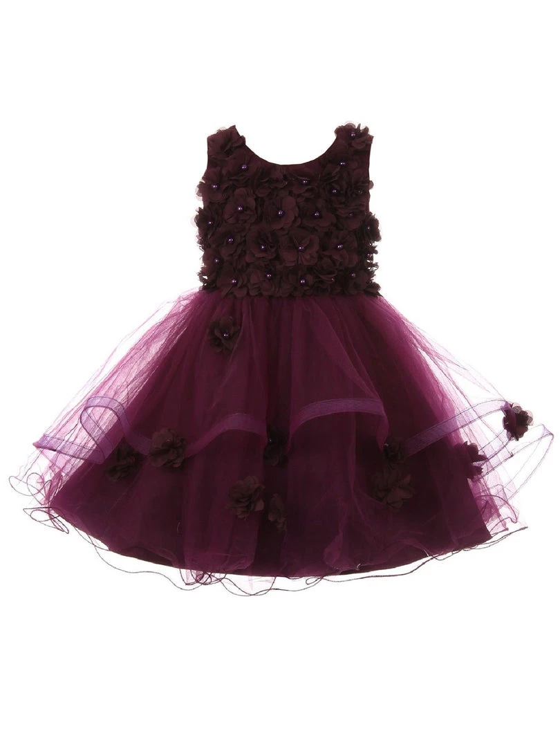 Your sweet girl will receive lots of compliments in this short sleeveless dress with floral appliques by Cinderella Couture 9084. Elegant short length dress with 3D flowers and pearls on the lace top, skirt made with 3 layers of tulle and 2 layers of soft satin, lightly colored flower stone beads on waistline, finished with soft satin back sash.