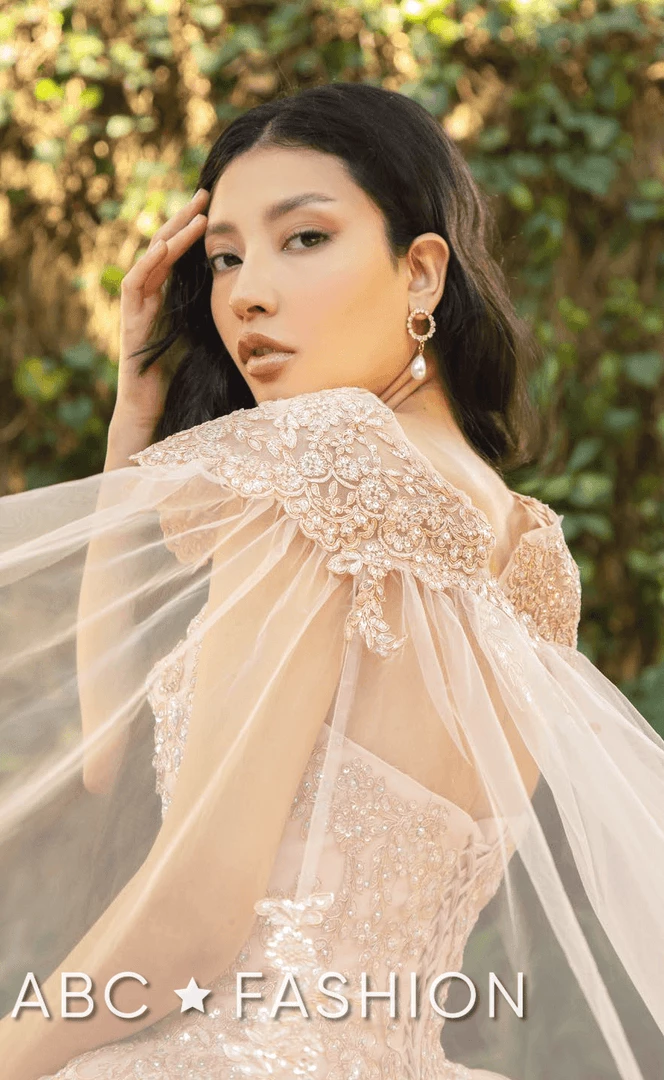Look like a fairy-tale Princess in this lace appliqued sleeveless dress with A-line skirt by Forever Quince FQ841. The bodice of this beautiful dress is adorned with handstitched embroidery and beads on a beautiful sweetheart neckline. This cape comes with an an embroidered cape to make you look like you came out of a fairy tale story. Open lace-up back with adjustable ties make this dress easy to get into for your special occasion!