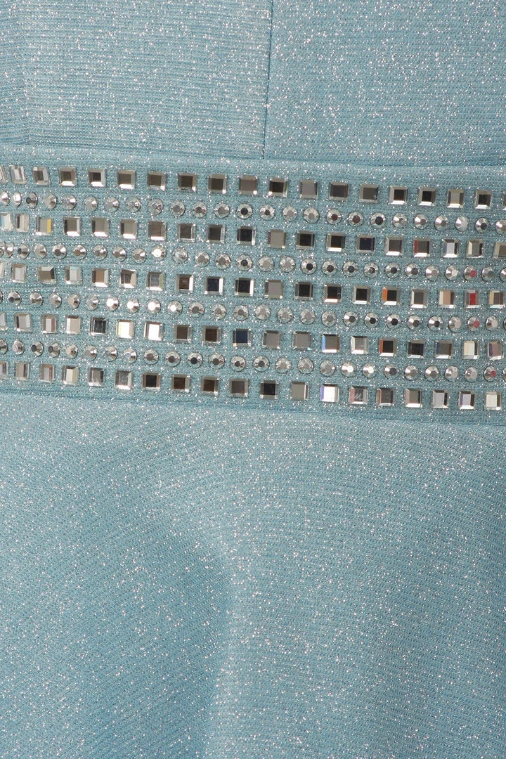 Your sweet girl will be a trendsetter in this short beaded metallic glitter dress with A-line skirt by Cinderella Couture 5070. Beautiful round neck sleeveless A-line metallic glitter dress adorned on waist with square shinny studs. Side elastic smocking for better fitting and back zipper closure.