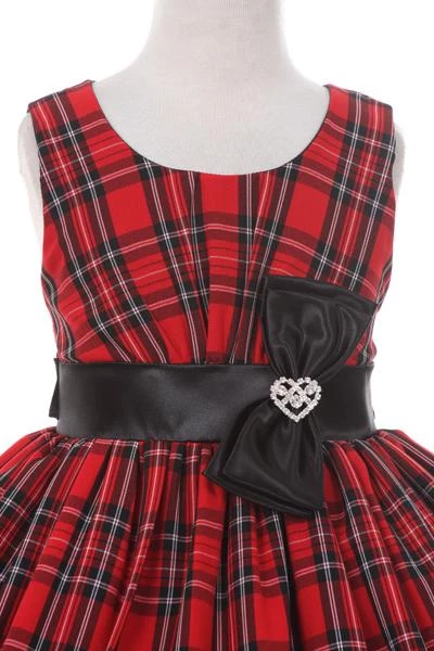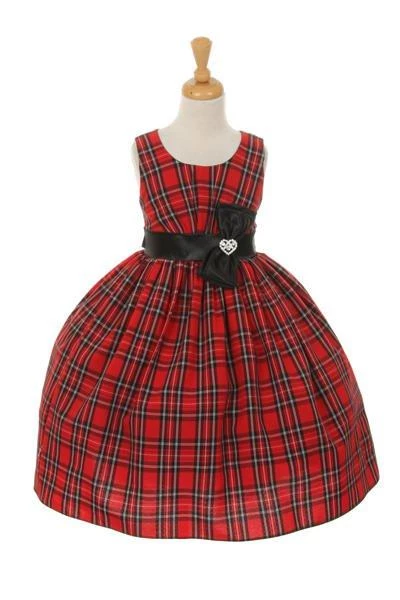 Your sweet girl will look picture-perfect in this sleeveless plaid print dress with satin sash by Cinderella Couture 1168. Beautiful checker dress with black sash decorated with rhinestone brooch. A handy back closure adds convenience.