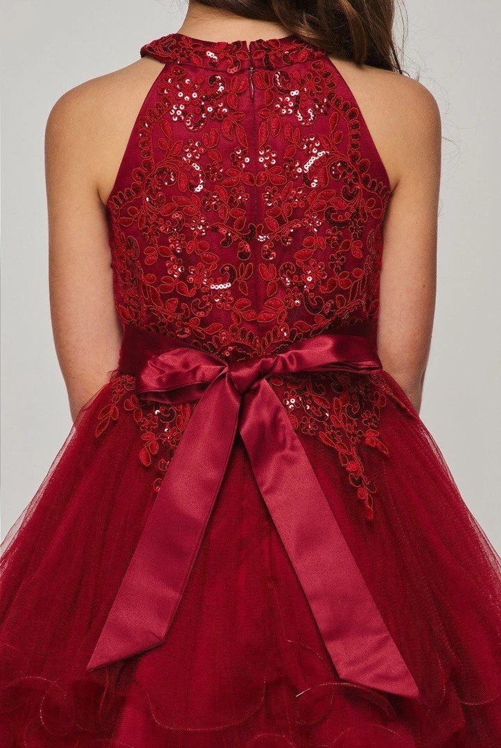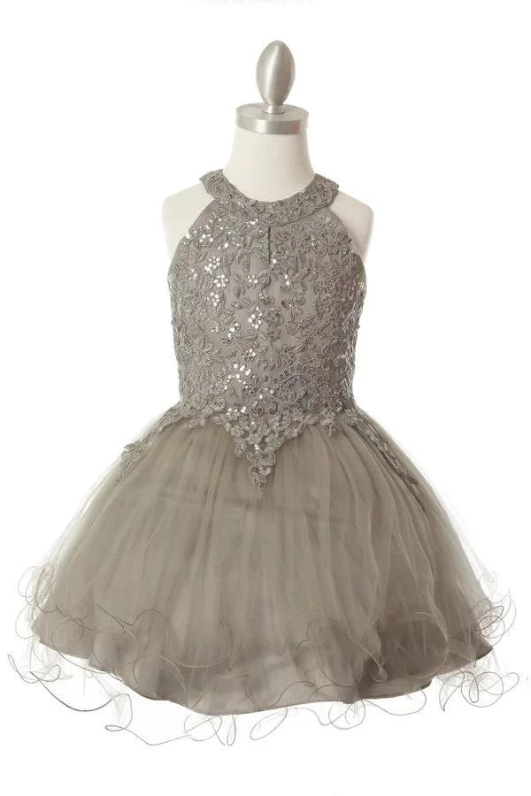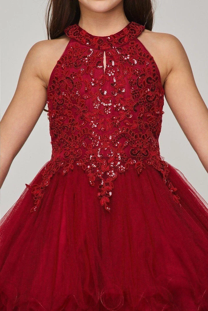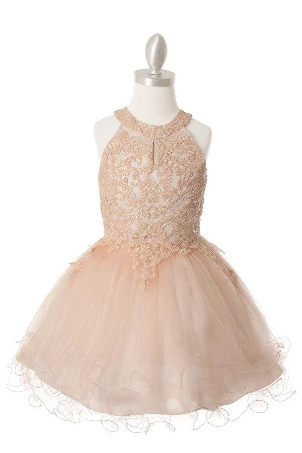 Your sweet girl will be selfie ready in this sequin applique short halter dress with A-line ruffled skirt by Cinderella Couture 5100. This is a dazzling halter neck rhinestone party tulle dress. Professionally crafted with all handmade beads and sequin design. Three different layers of soft tulle skirts with wire netting on the bottom.
