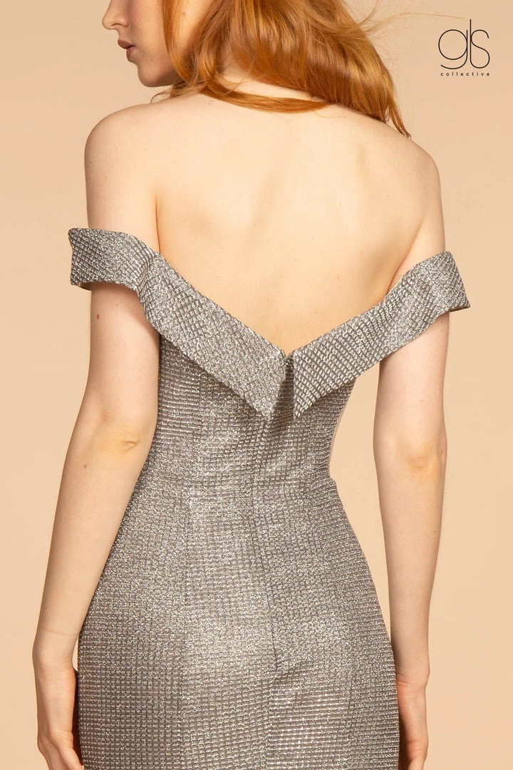 Think of how amazing you’ll look in this glitter long off the shoulder dress by Elizabeth K.