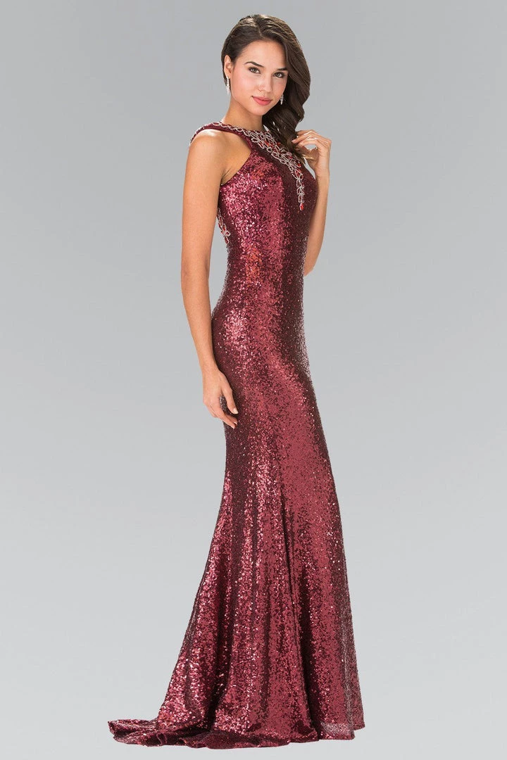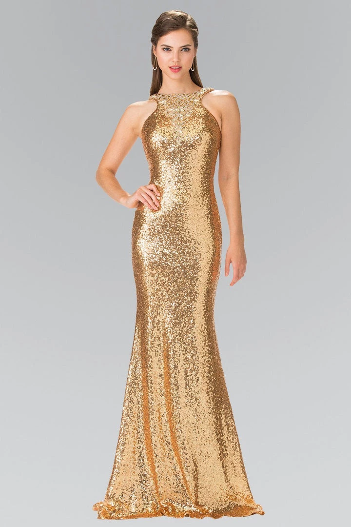 Turn heads in this high neck sequined dress with open back by Elizabeth K.
