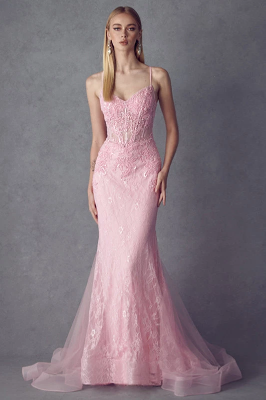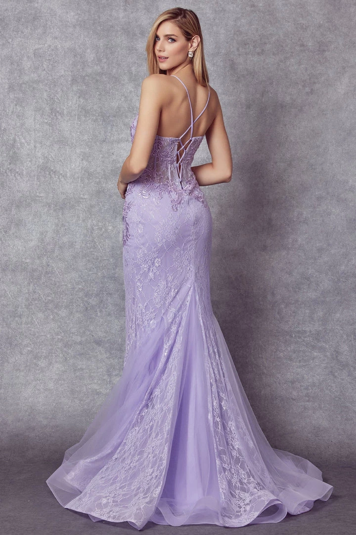 - Illusion Lace Corset Mermaid Dress by Juliet