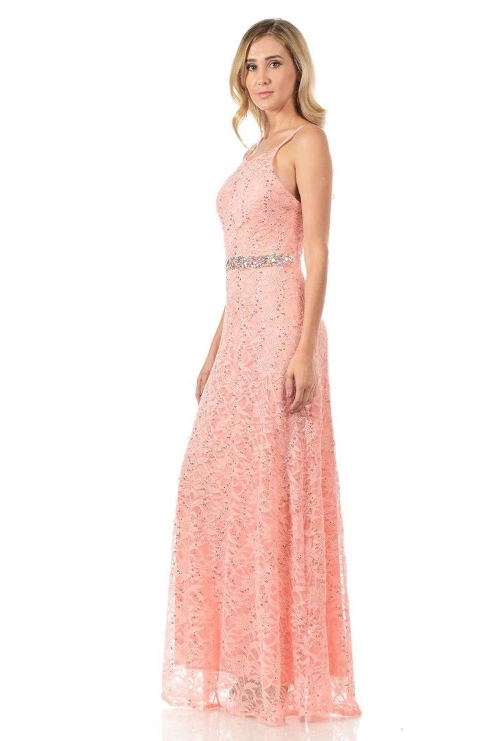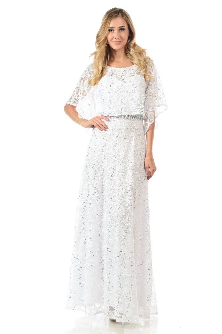 Make a lasting impression in this long mint lace caplet dress with beaded waist by Lenovia. This long evening gown features a spaghetti strap bodice with a scoop neckline, beaded waistline, shimmery sequins all over the lace gown, a full length skirt, and a zipper closure. A matching lace caplet is included with this gown. Perfect for any formal event!