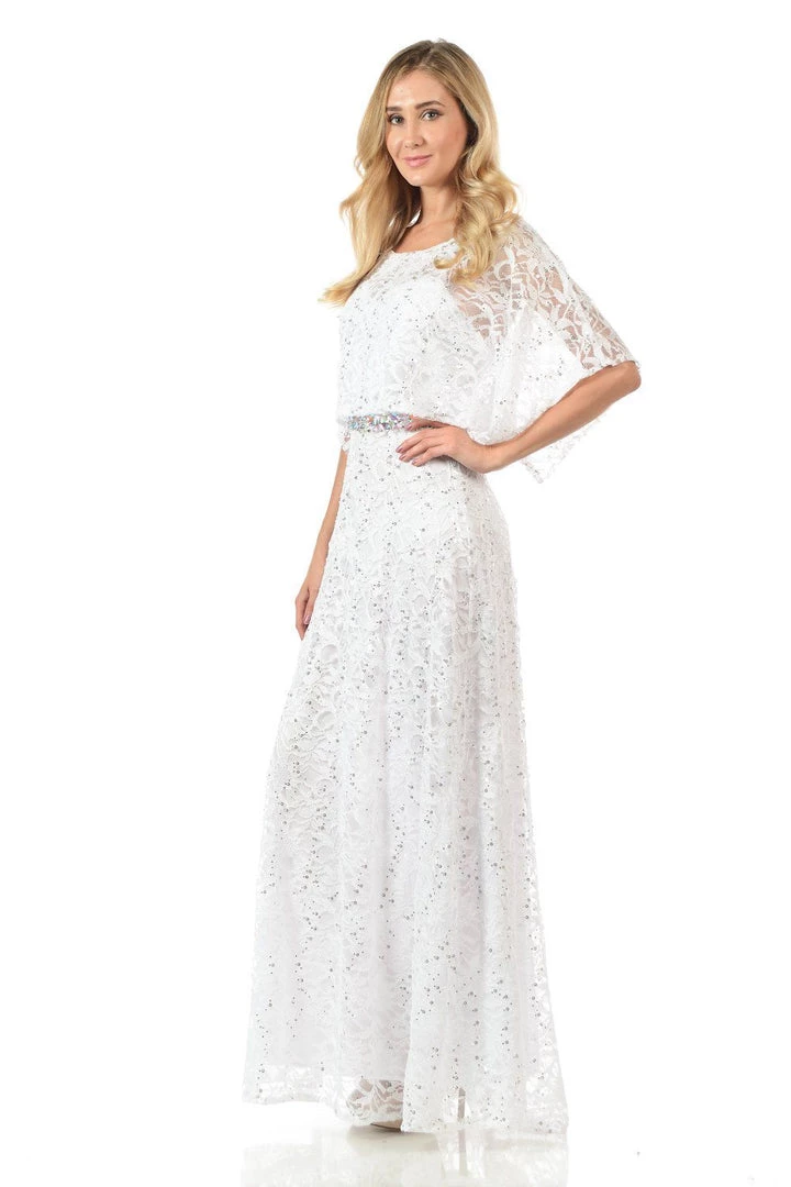 Look unforgettable in this long red lace caplet dress with beaded waist by Lenovia. This long evening gown features a spaghetti strap bodice with a scoop neckline, beaded waistline, shimmery sequins all over the lace gown, a full length skirt, and a zipper closure. A matching lace caplet is included with this gown. Perfect for any formal event!