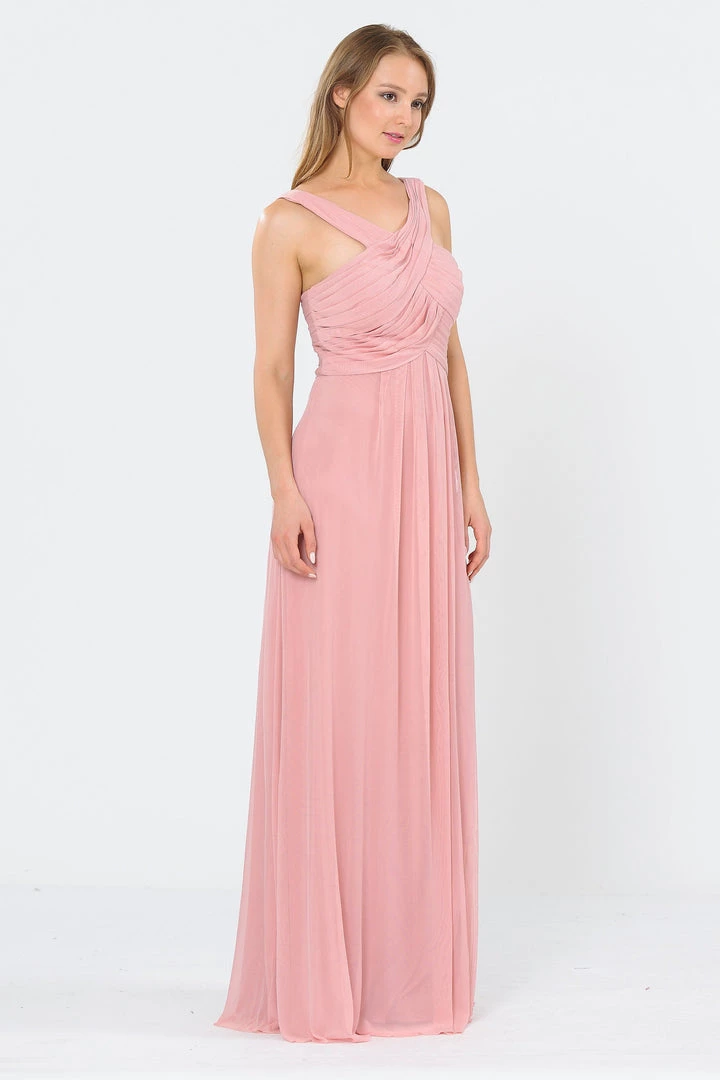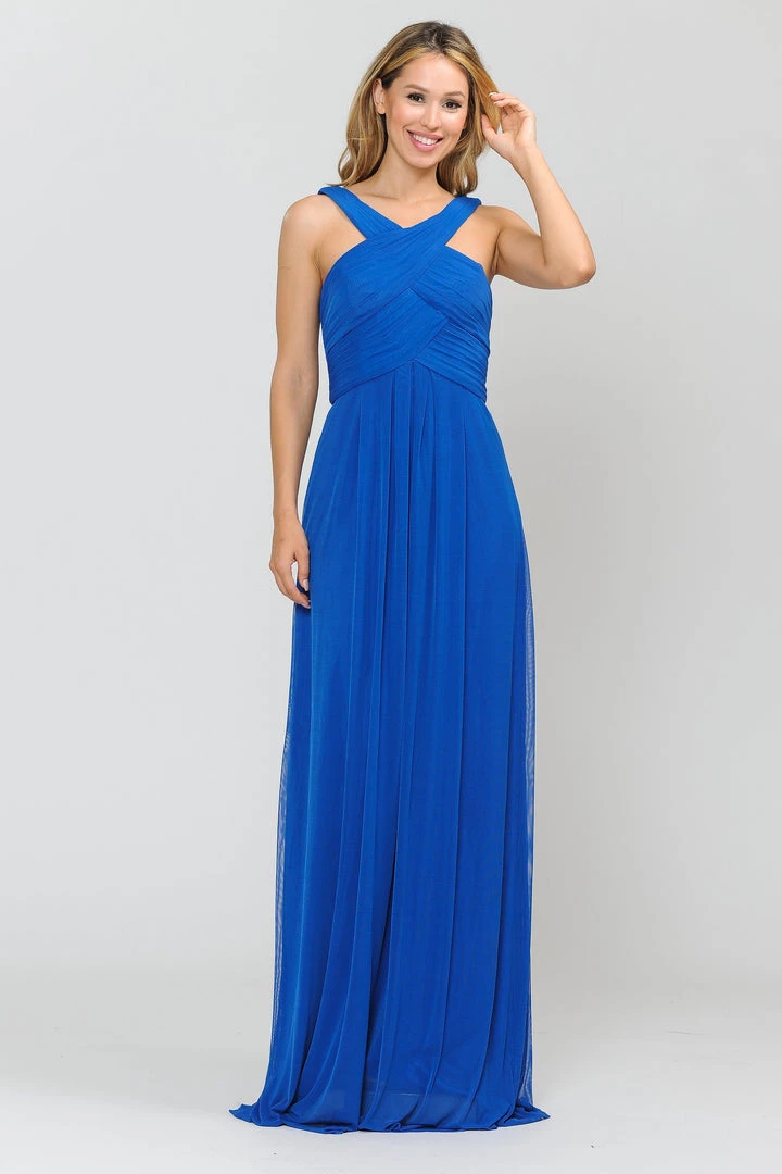 Look unforgettable in thisĀ long A-line dress with pleated bodice by Poly USA 8554. This beautiful formal gown features a pleated sleeveless V-neck bodice with crisscross straps, open back, floor length A-line skirt, and a zipper closure. Affordably priced under $150, this long evening dress is perfect for any formal event and will keep you on budget!