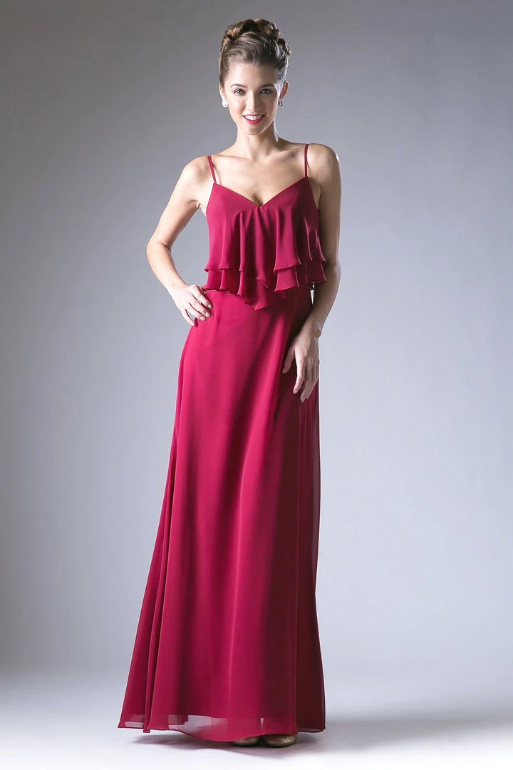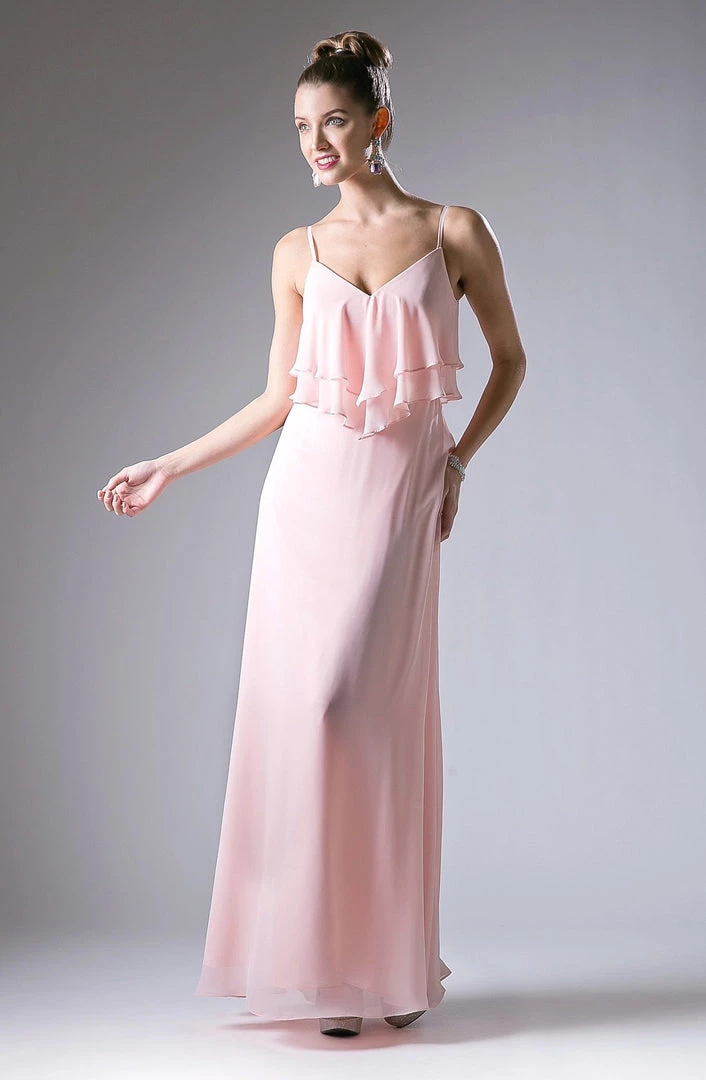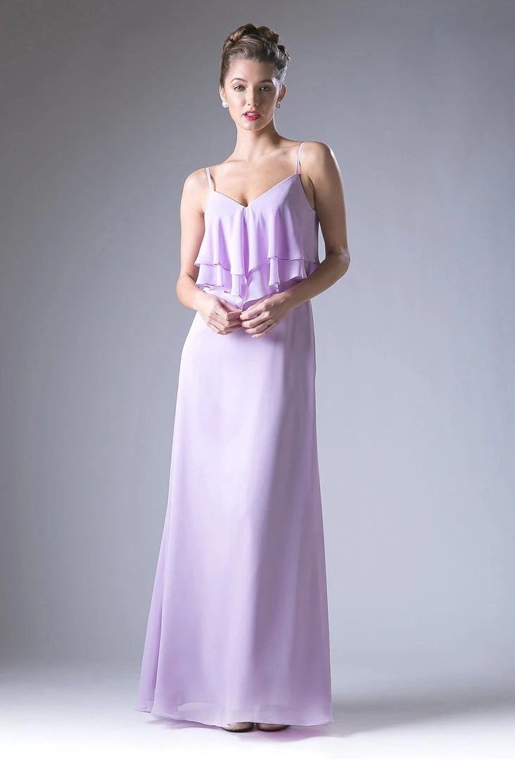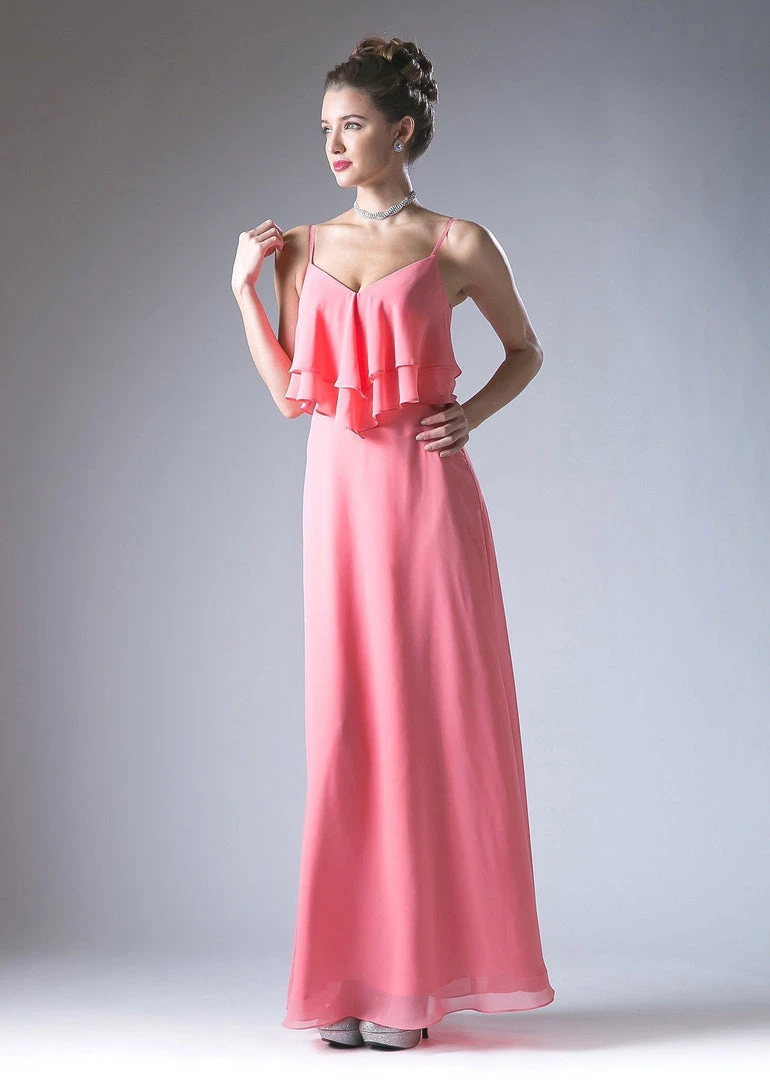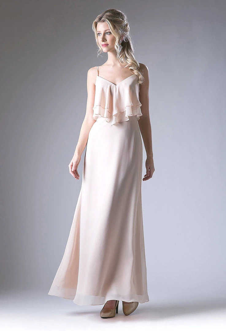 Light up the room in this long sleeveless chiffon dress with ruffled flounce bodice by Cinderella Divine CH537.