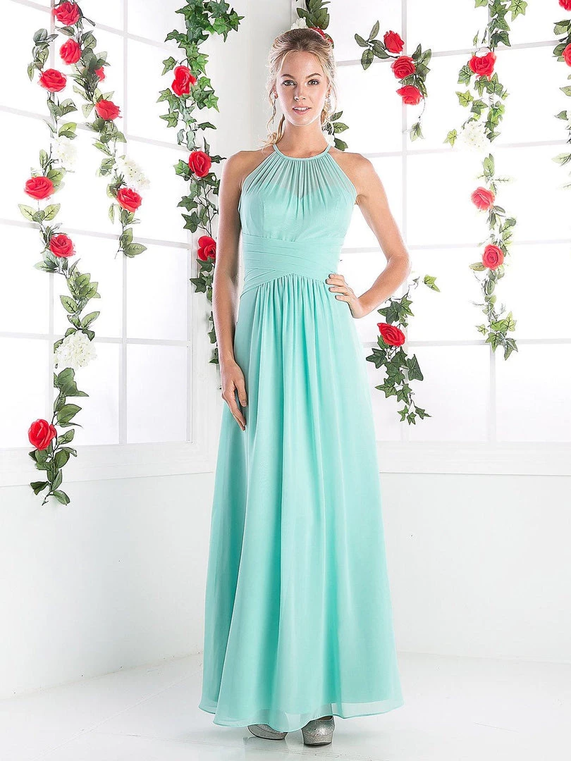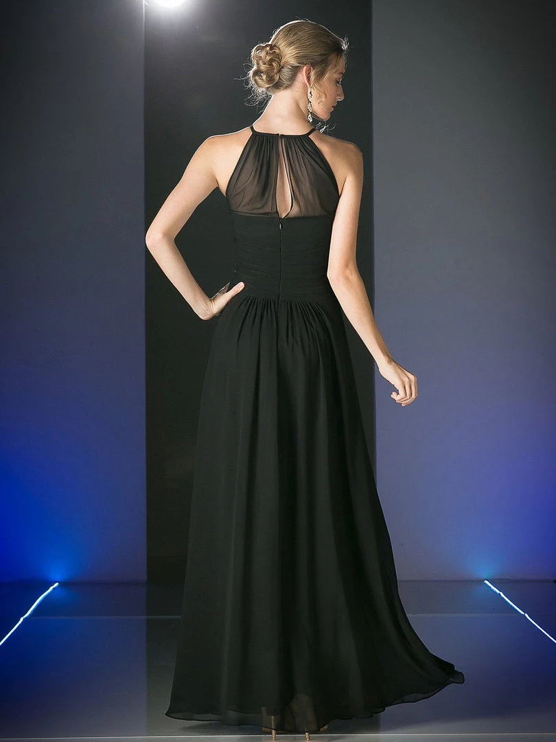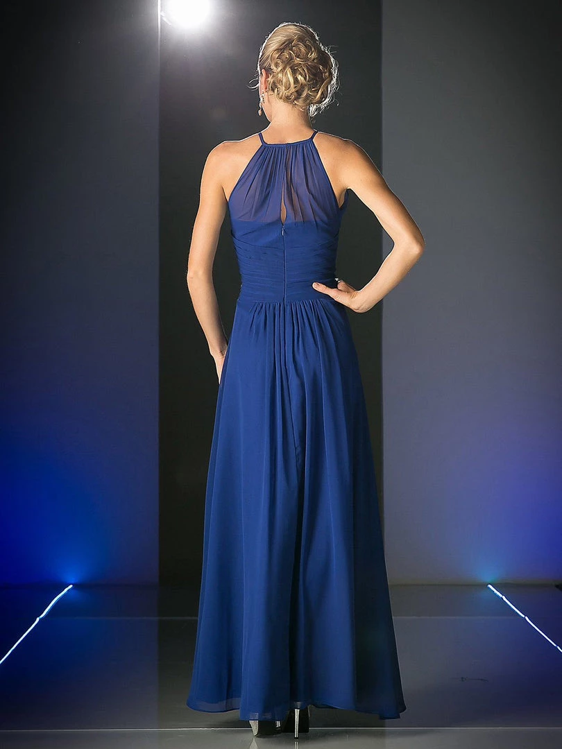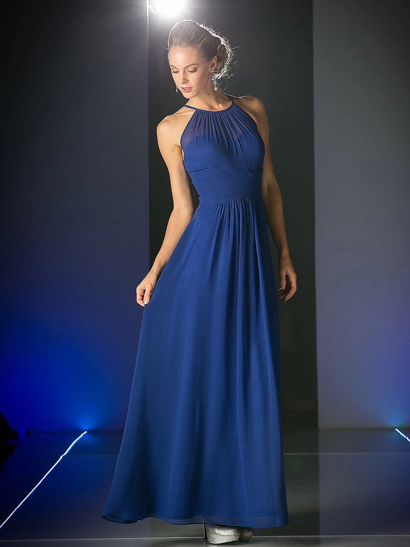 Dazzle the room in this halter overlay evening dress by Cinderella Divine CH1501. Halter neckline with overlay sweetheart bodice and faux wrap waist. Flowy light weight floor length long skirt complete the style.