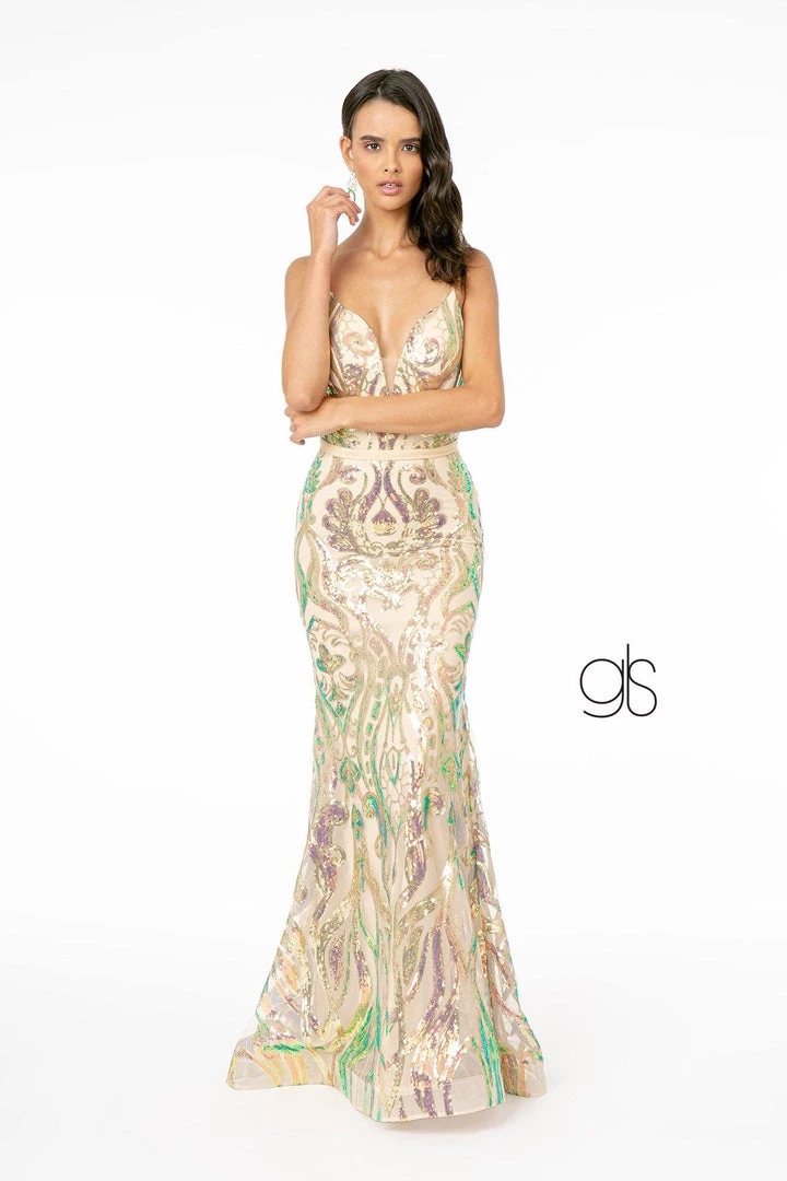 Be a trendsetter in thisĀ long iridescent sequin print fitted dress by Elizabeth K GL1845. Affordably priced at $199, this gown is perfect for any formal event and will keep you on budget!