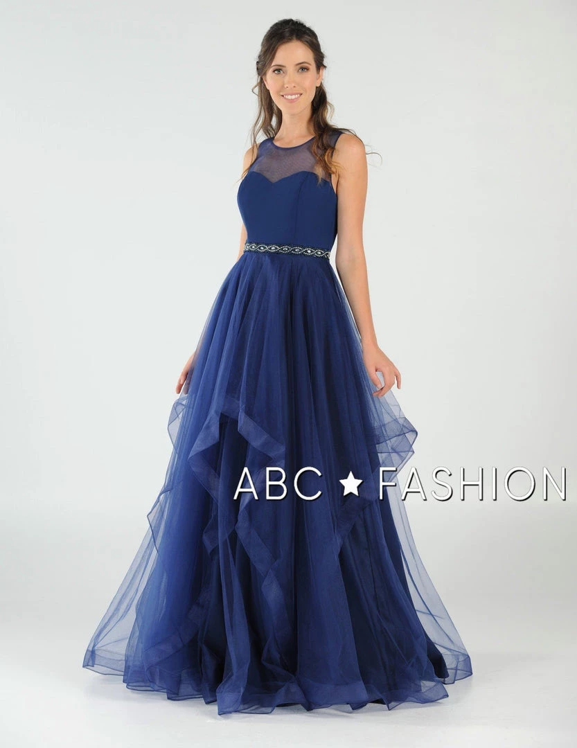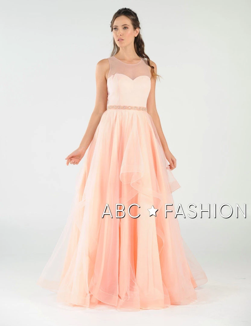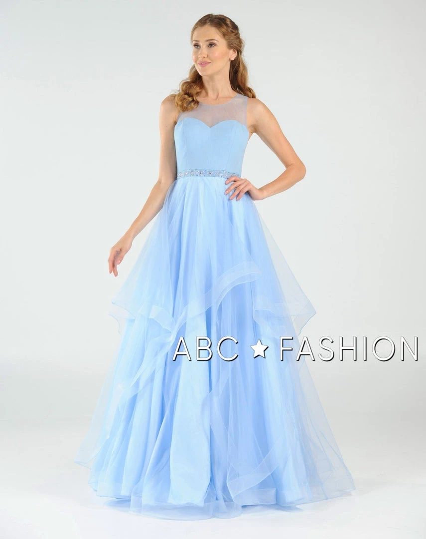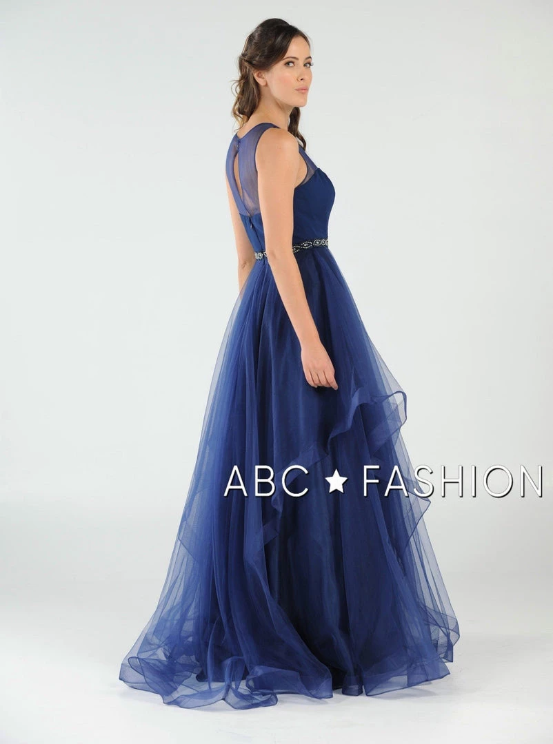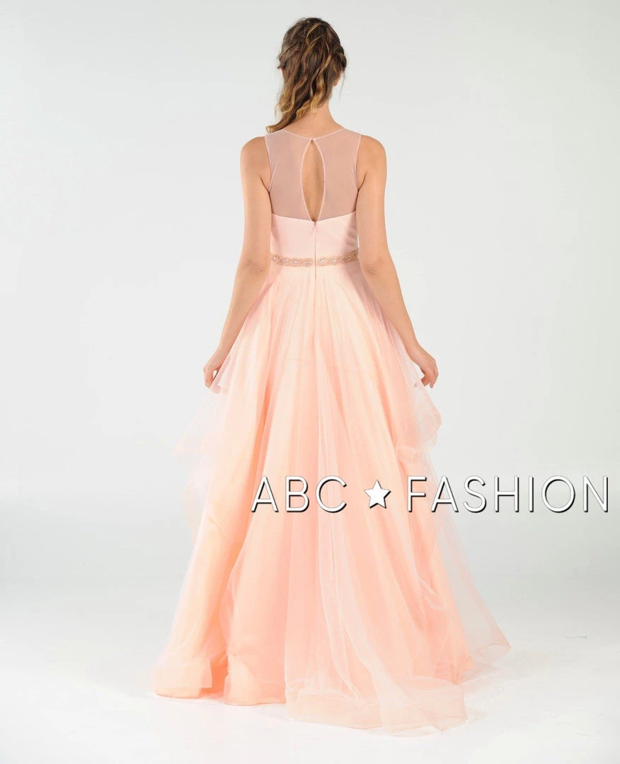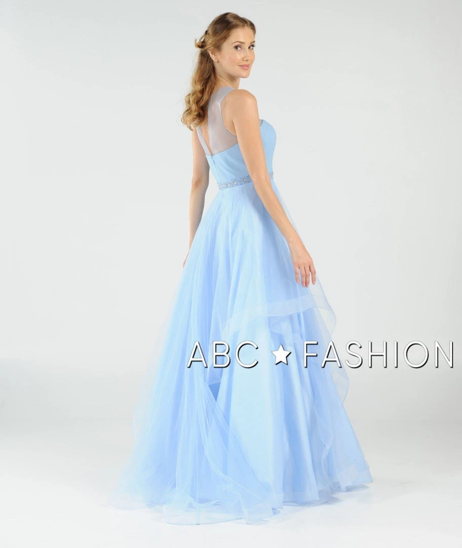 Twirl the night away in this sleeveless illusion gown with layered skirt by Poly USA 8134. Beautiful organza dress with a gorgeous illusion sleeveless sweetheart bodice, beaded waistline, sheer back with keyhole cutout, floor length layered skirt with horsehair hemline, and a zipper closure. Affordably priced under $200, this dress is perfect for any formal event and will keep you on budget!
