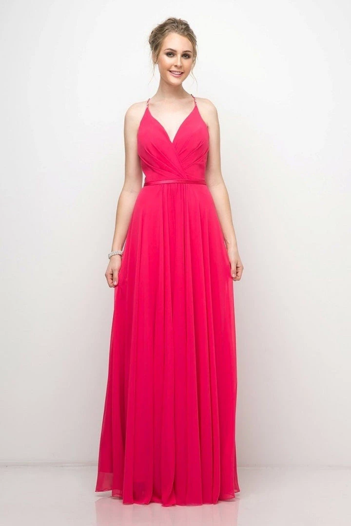 Look radiant in this long V-neck dress with A-line skirt by Cinderella Divine CJ238.