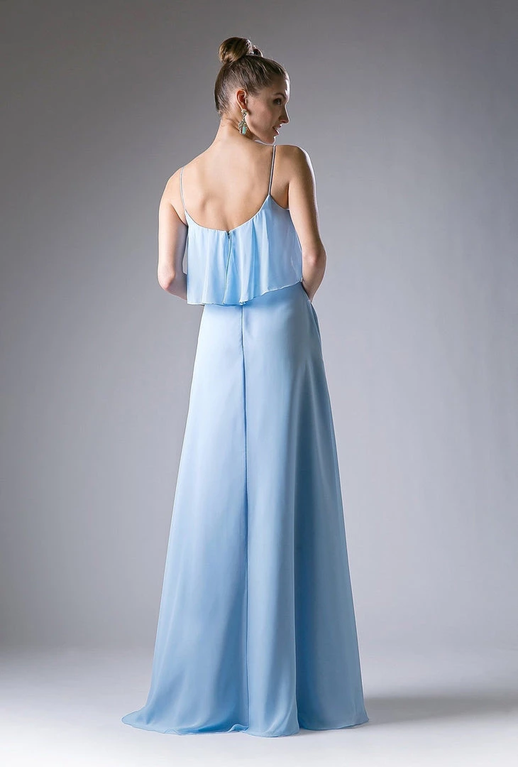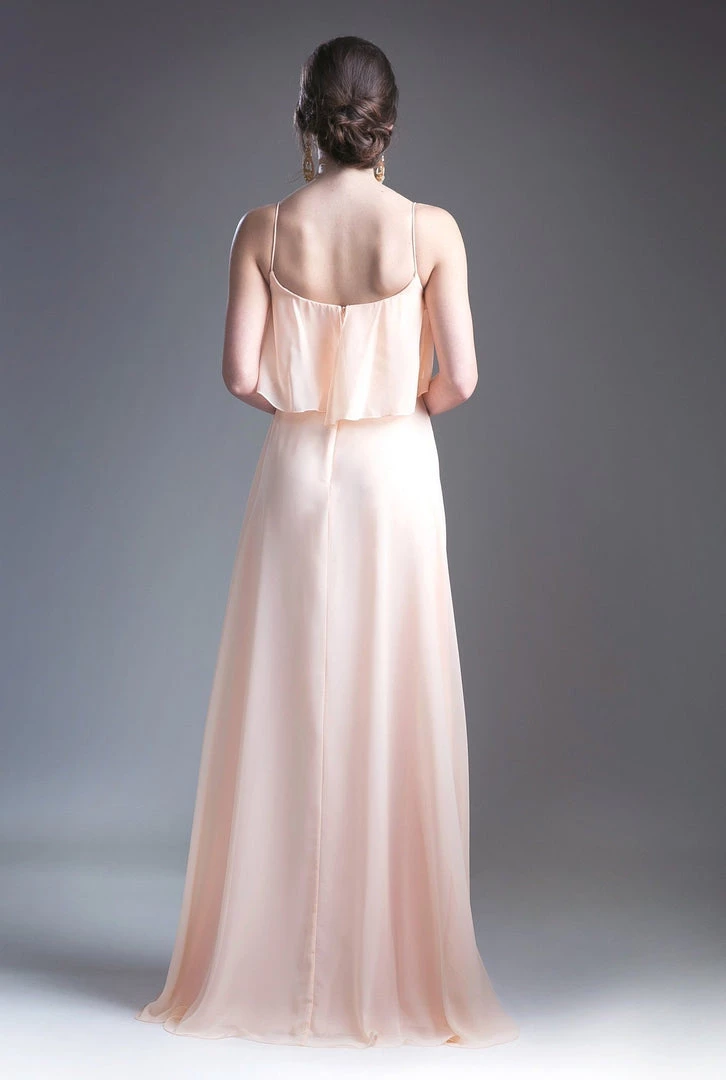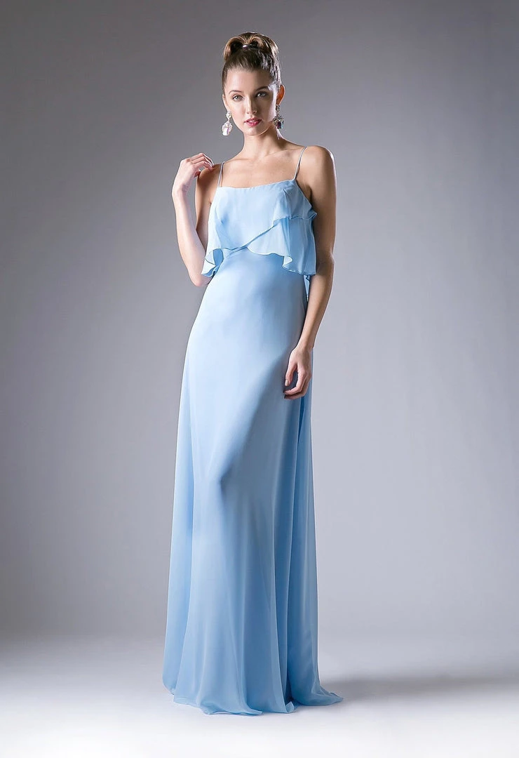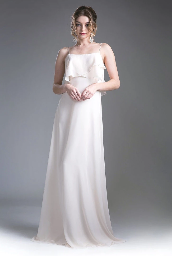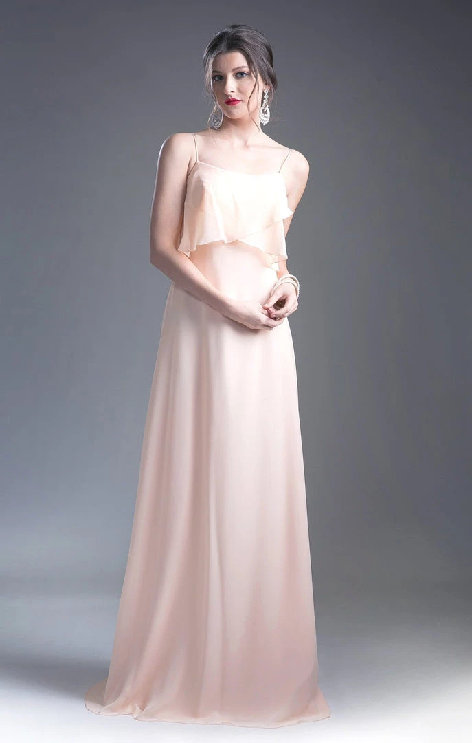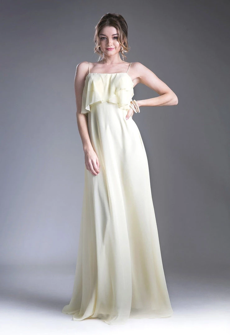 Be selfie ready in this long sleeveless dress with flounced bodice by Cinderella Divine 13010.