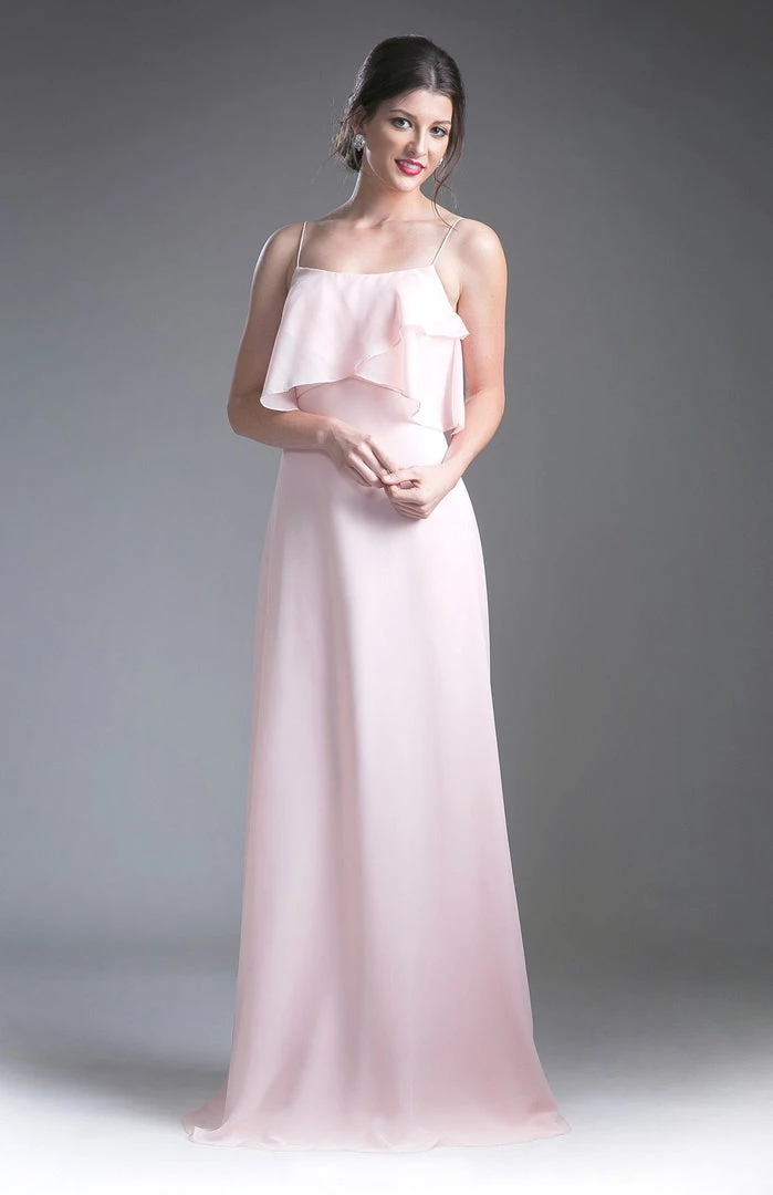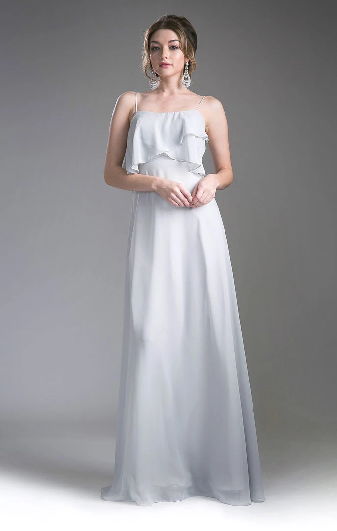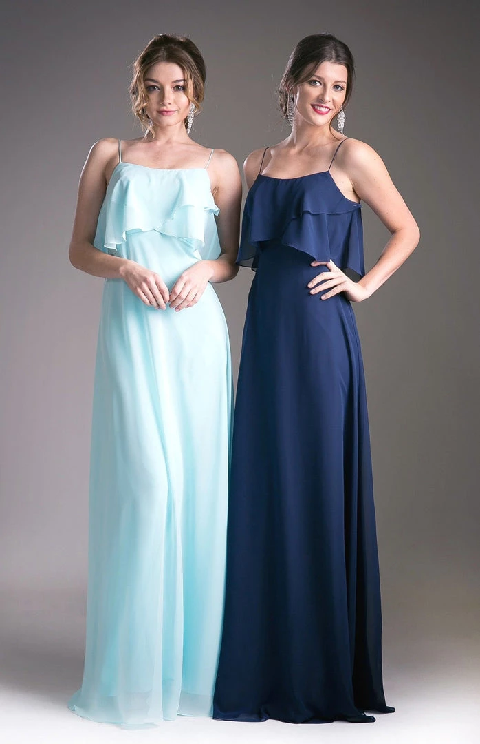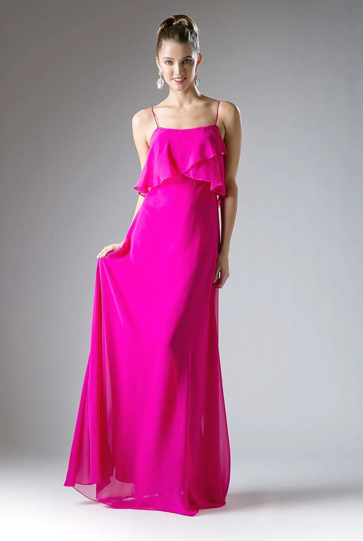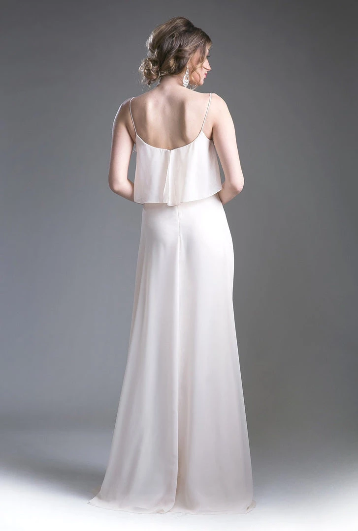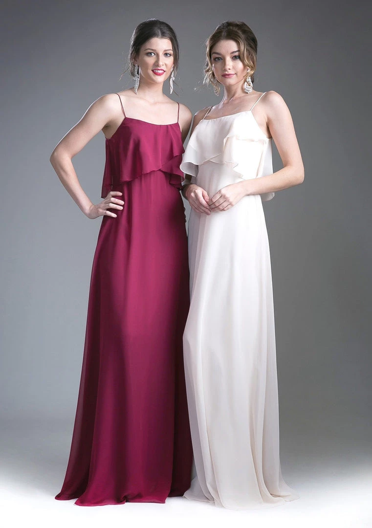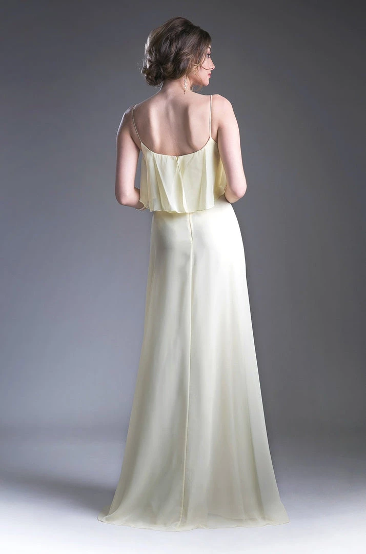 Be selfie ready in this long sleeveless dress with flounced bodice by Cinderella Divine 13010.