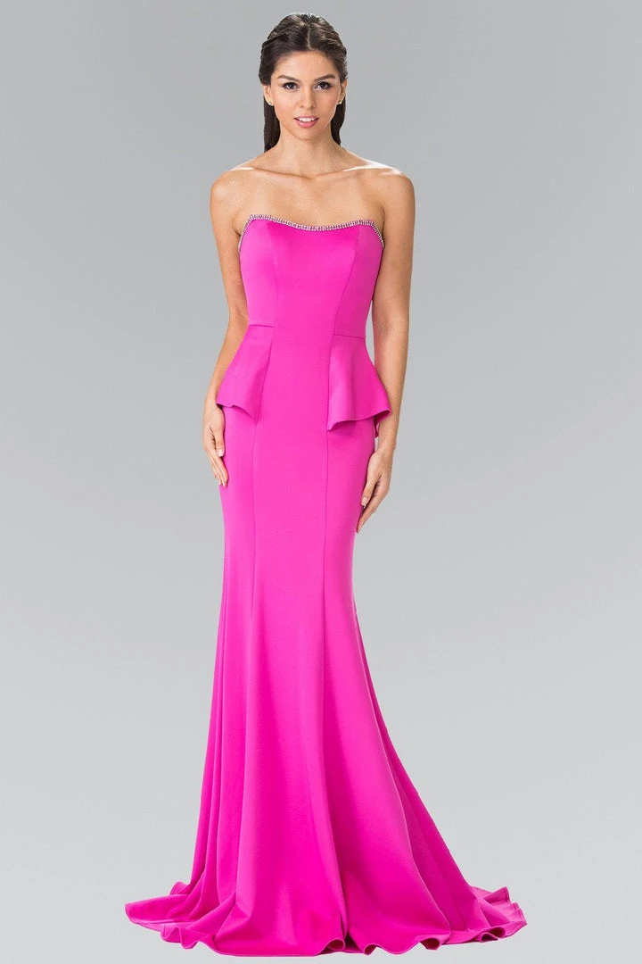 You’ll be the life of the party in this long strapless jersey mermaid dress by Elizabeth K. Made out of rich jersey, this beautiful mermaid gown features a strapless neckline accented with beads and a slimming skirt that elegantly flows to the floor.